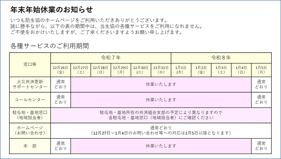 いつも防生協のホームページをご利用いただきありがとうございます。